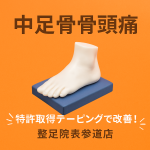 足裏の痛みを根本から改善する「特許取得のテーピング技術」 「歩くと足裏のつけ根がズキズキ痛む」 「立っていると足の前の方に違和感がある」 そんな症状に悩んでいる方は、中足骨骨頭痛(ちゅうそくこつこっと ...