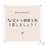 足元を整えることは、全身を整えること 足は身体の土台。歩行や姿勢のバランスに大きく関わる部分です。 しかし、現代の生活では運動不足や姿勢のクセ、靴の影響などにより、 多くの方が足のトラブルを抱えていま ...